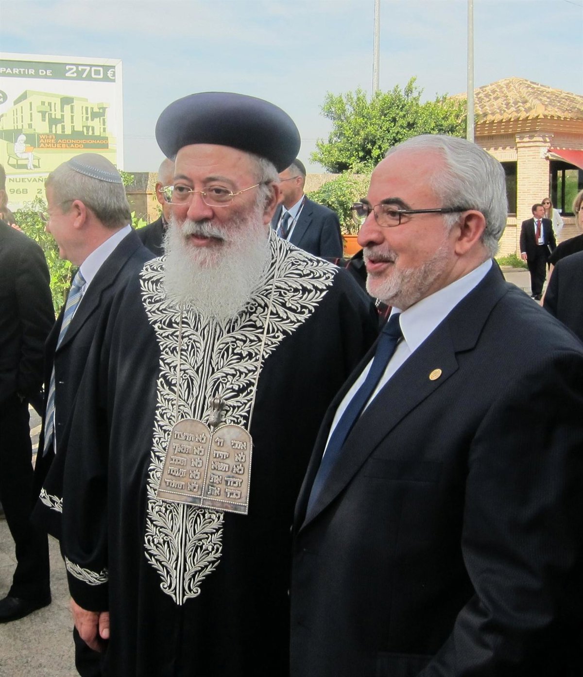 El presidente de la Universidad Católica de Murcia (UCAM), José Luis Mendoza; y el Gran Rabino Sefardita de Israel, Shlomo Moshe Amar, realizan este miércoles una visita guiada a la sinagoga de Lorca con motivo de la Semana Cultural Sefardí.