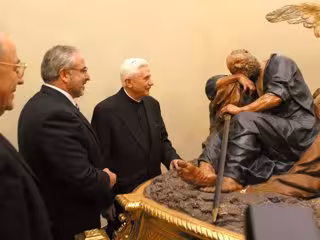 José Luis Mendoza y el cardenal Ratzinger durante la visita al Museo Salzillo (Murcia) en noviembre de 2002 - UCAM