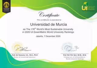 La Universidad de Murcia (UMU) ocupa la posición 176 en la clasificación de universidades sostenibles 'IU GreenMetric' 2020 sobre un total de 912 centros, según informaron fuentes de la institución docente en un comunicado.