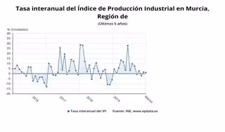 Evolución de la tasa interanual del Índice de Producción Industrial en Murcia - EUROPA PRESS