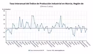 Tasa interanual del Índice de Producción Industrial en Murcia - EUROPA PRESS