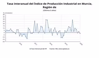 Tasa interanual del Índice de Producción Industrial en Murcia - EUROPA PRESS