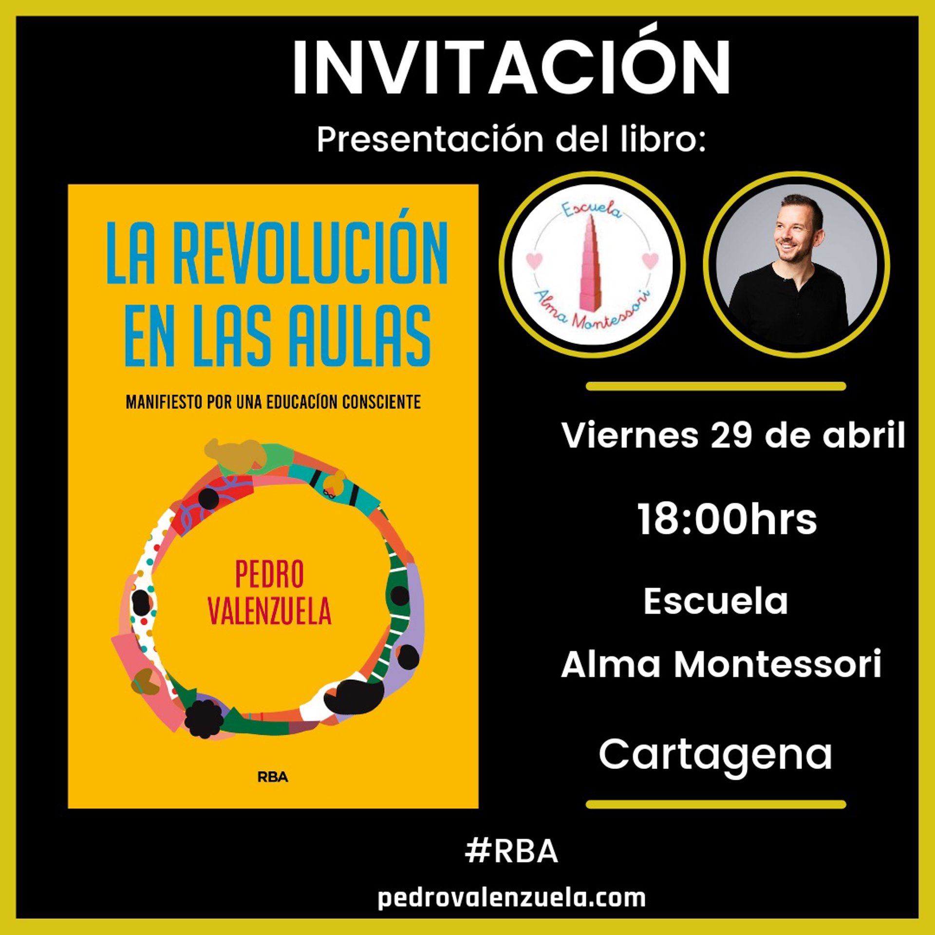 El profesor Pedro Valenzuela presentará este viernes su libro 'La Revolución en las aulas', en un acto que tendrá lugar a las 18.00 horas en el colegio Alma Montessori de Cartagena (Murcia), según han informado fuentes de la Unión de Cooperativas de la Región de Murcia (UCOMUR).