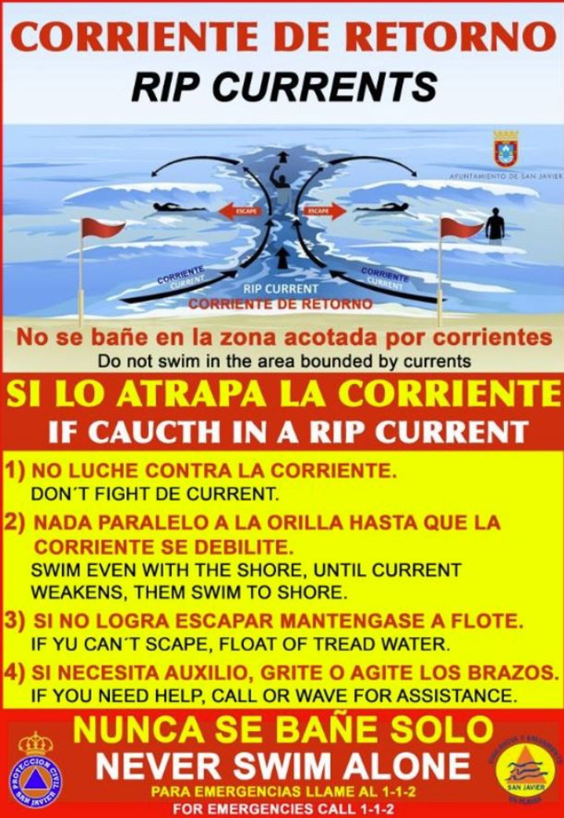 Cartel con recomendaciones frente a las corrientes de agua - CENTRO DE COORDINACIÓN DE EMERGENCIAS