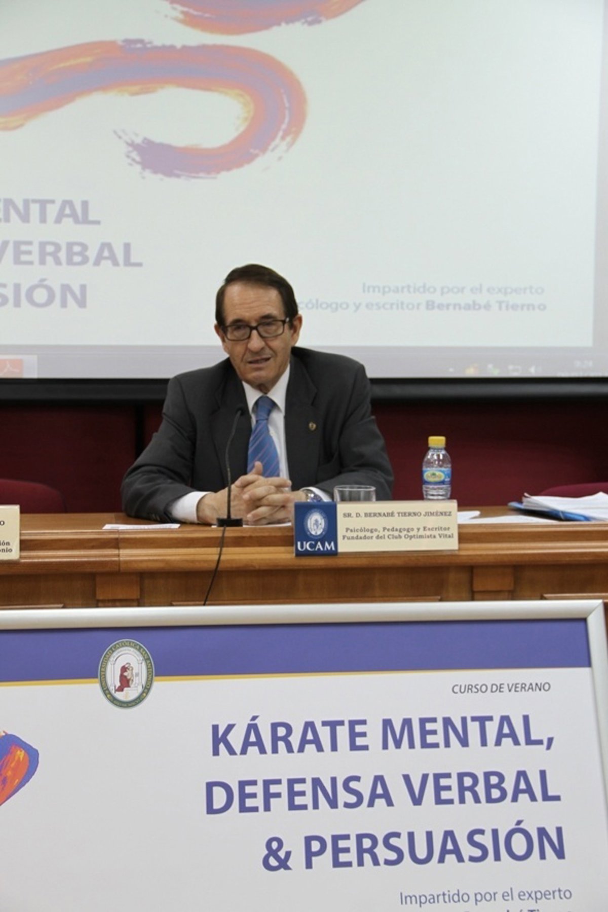 El prestigioso psicólogo Bernabé Tierno, que ha inaugurado este martes en la Universidad Católica San Antonio de Murcia (UCAM) el curso de verano 'Kárate mental, defensa verbal y persuasión' que tendrá lugar hasta el próximo viernes, ha destacado la importancia de aplicar técnicas de kárate mental en diversos ámbitos, como la educación o las empresas.
