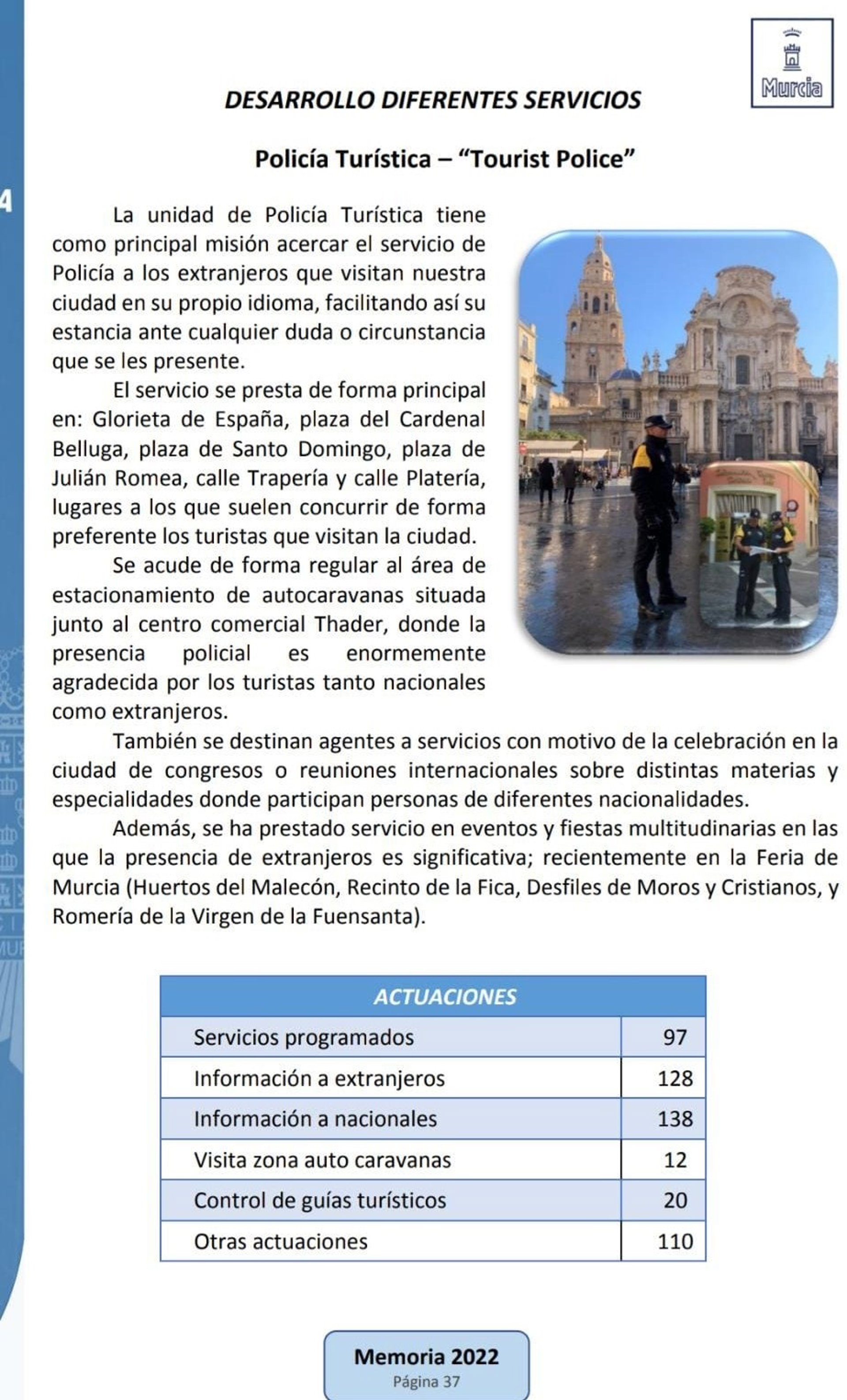 MEMORIA 2022 INTERVENCIONES POLICÍA TURÍSTICA - PSOE MURCIA