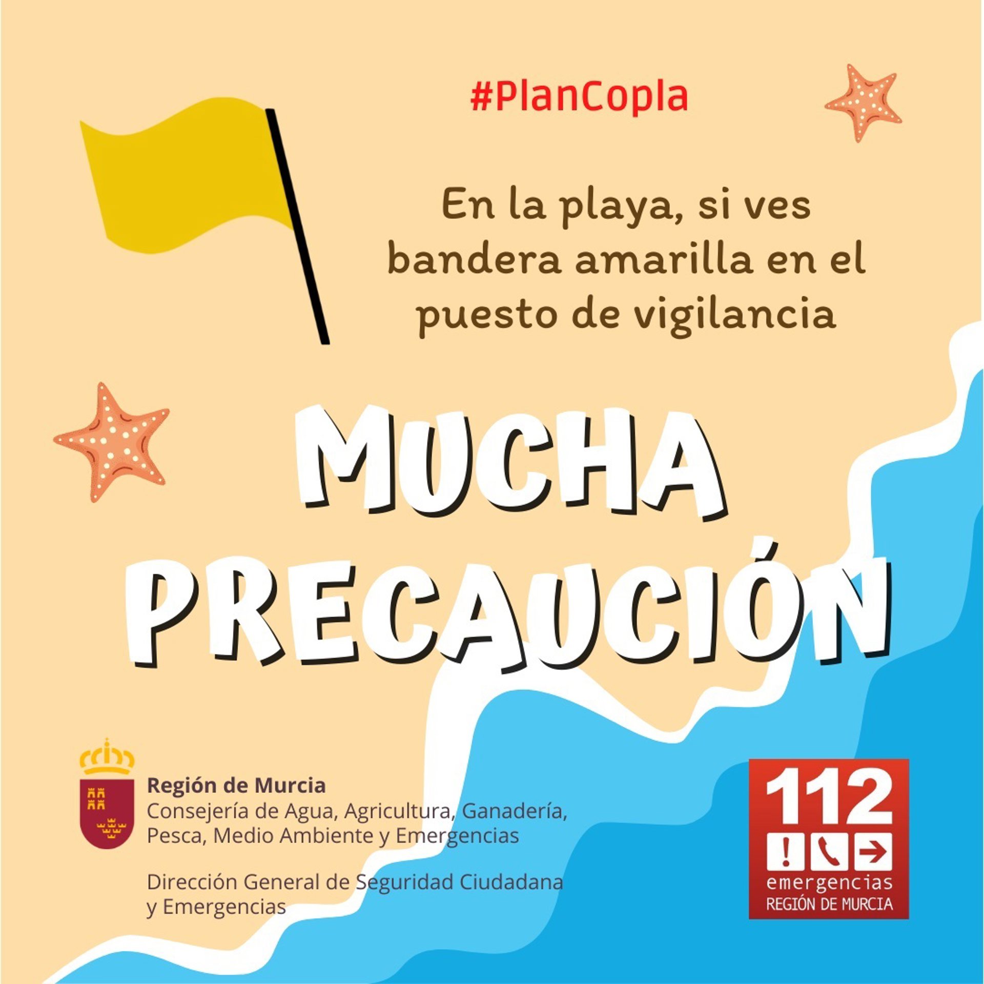 Los puestos de vigilancia de playas del Plan Copla han abierto este miércoles izando 13 banderas amarillas (que indican precaución) y 1 roja (prohibido el baño).