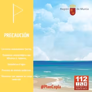 Los puestos de vigilancia de playas del Plan Copla han abierto este sábado con una bandera amarilla --que indica precaución-- en una playa de Águilas, según fuentes del Centro de Coordinación de Emergencias consultadas por Europa Press.