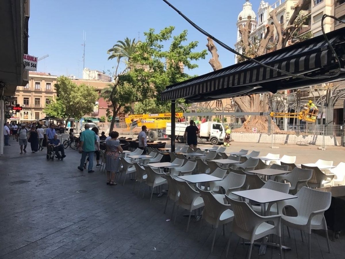 La plaza, que desde el momento de la caída quedó cerrada al tránsito de personas, está de nuevo abierta, tanto en la zona central como la habilitada a las terrazas, por lo que las mesas de los establecimientos hosteleros pueden volver a instalarse.