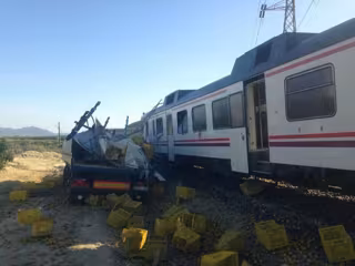 Por otro lado, la Guardia Civil indicó que había recibido una llamada que alertaba de que el tren de cercanías que cubre la línea entre Murcia y el municipio de Águilas había "descarrillado" tras producirse la colisión con un camión de cítricos que se encontraba "atravesado en el camino", a la altura de "un paso a nivel sin barreras" ubicado en el paraje Benzal, en el término municipal de Pulpí (Almería).