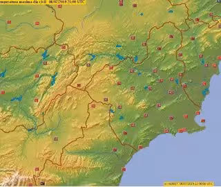 Imagen de las temperaturas máximas alcanzadas en la Región - TWITTER DE LA AEMET EN MURCIA