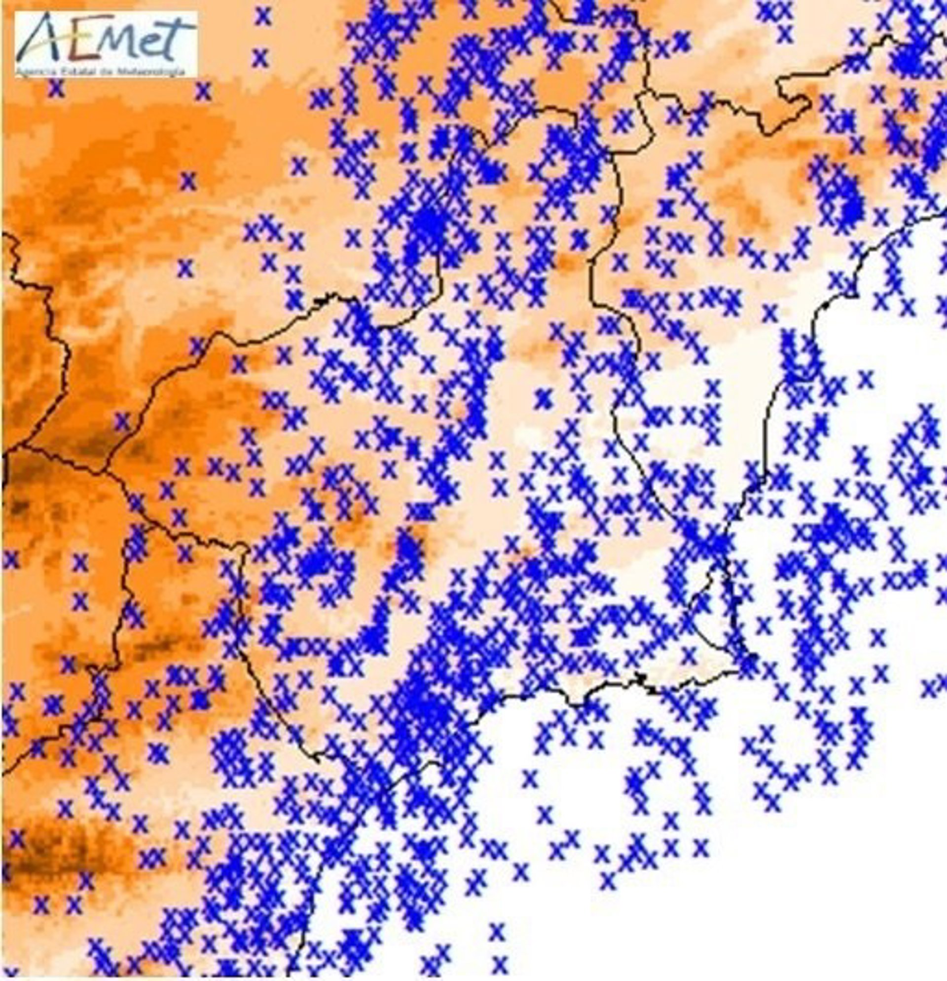 La Región de Murcia contabilizó 505 rayos caídos desde las 8.00 horas de este martes y las 8.00 horas de este miércoles, según los datos publicados por la Agencia Estatal de Meteorología (Aemet) en su cuenta de Twitter.