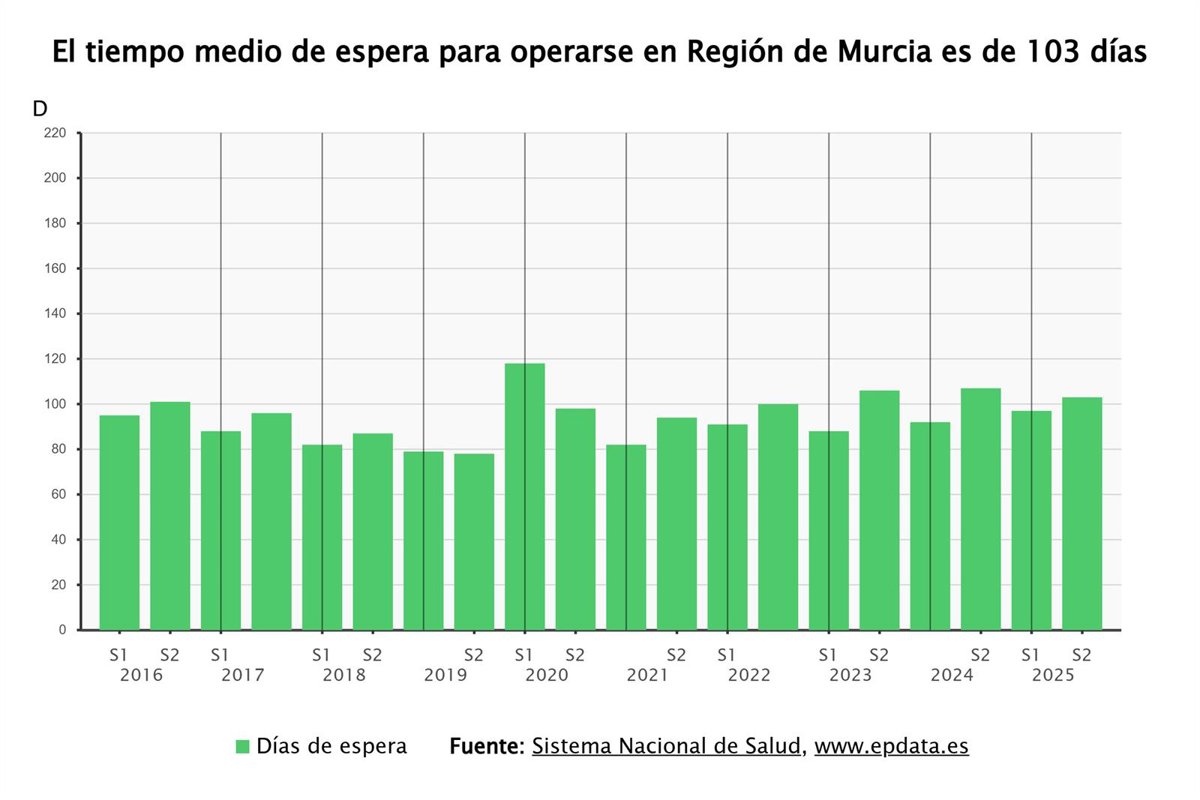 Tiempo medio de espera para operarse en la Región de Murcia - EPDATA