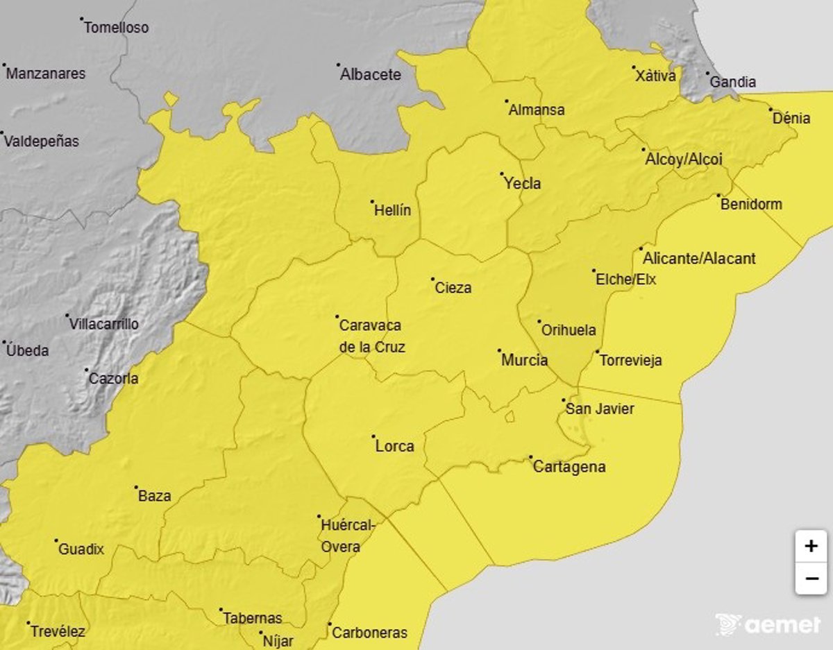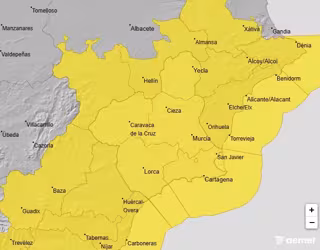 La Agencia Estatal de Meteorología (Aemet) ha establecido aviso amarillo por viento de 70 kilómetros por hora en toda la Región de Murcia y por fenómenos costeros.