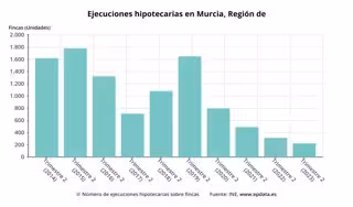 Por otro lado, la Región registró 224 ejecuciones hipotecarias iniciadas sobre el total de fincas, también la quinta mayor cifra por comunidades.
