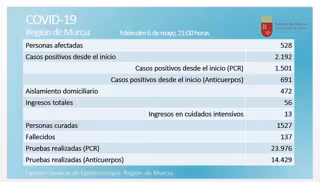 Balance de coronavirus en la Región de Murcia el 6 de mayo de 2020 - CARM