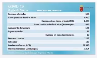 Balance de coronavirus en la Región de Murcia el 30 de abril de 2020 - CARM