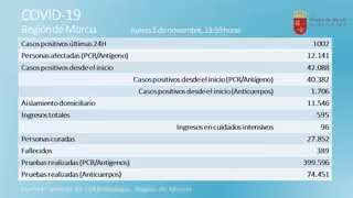 La Región de Murcia ha superado por primera vez el millar de casos de coronavirus en solo un día desde el inicio de la pandemia, con 1.002 nuevos casos en las últimas 24 horas.