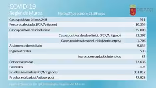 Tabla diaria sobre la incidencia del coronavirus en la Región de Murcia - CARM