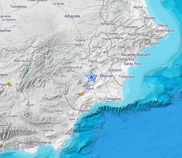 El terremoto no ha causado heridos y no se han registrado daños materiales de importancia, más allá de un falso techo de una vivienda de Bullas, según fuentes del 112 Región de Murcia.