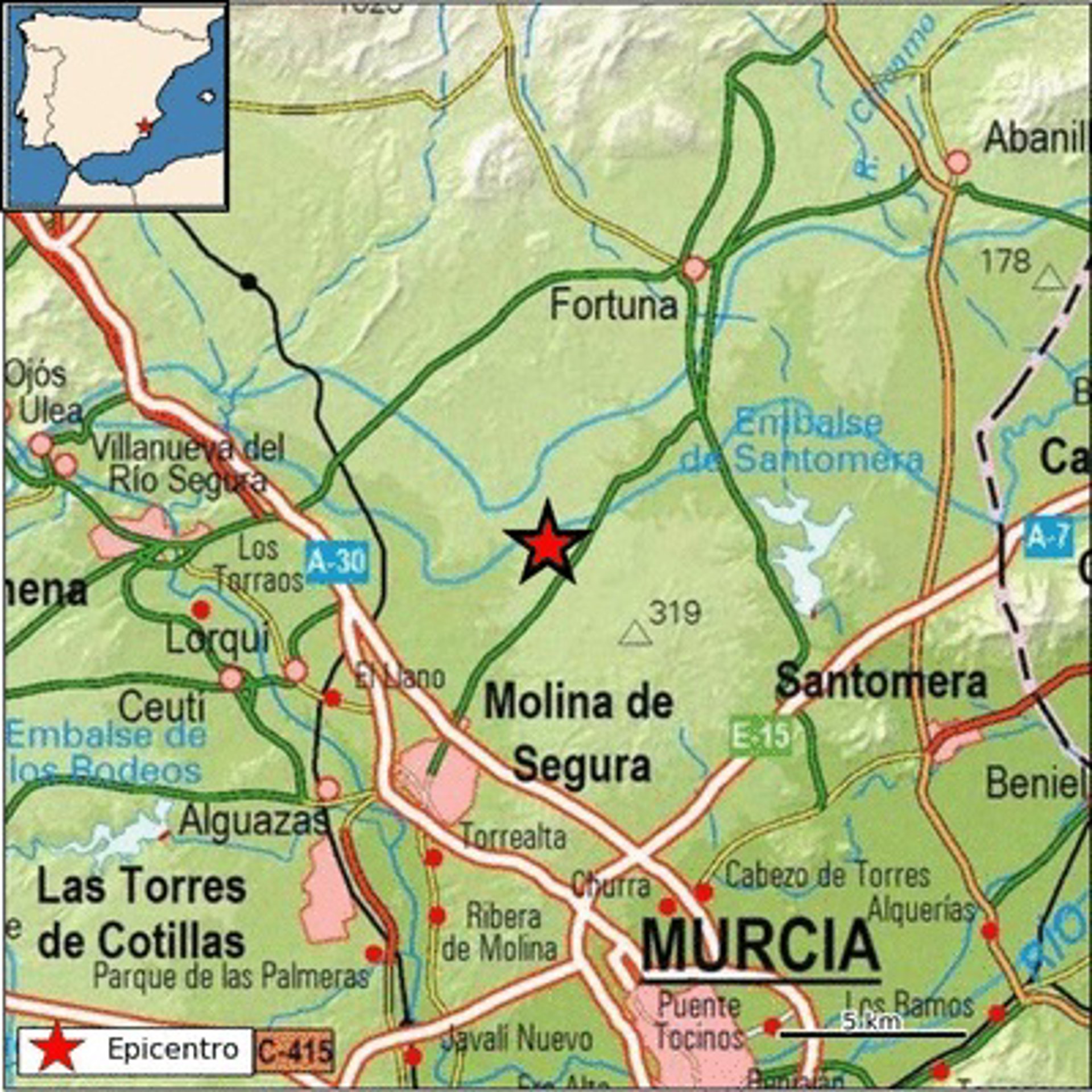 El Instituto Geográfico Nacional (IGN) ha informado, a través de su Red de Información Sísmica, de que a las 22.21 horas de este jueves tuvo lugar un movimiento sísmico de magnitud 2.4 y epicentro al noreste de Molina de Segura.