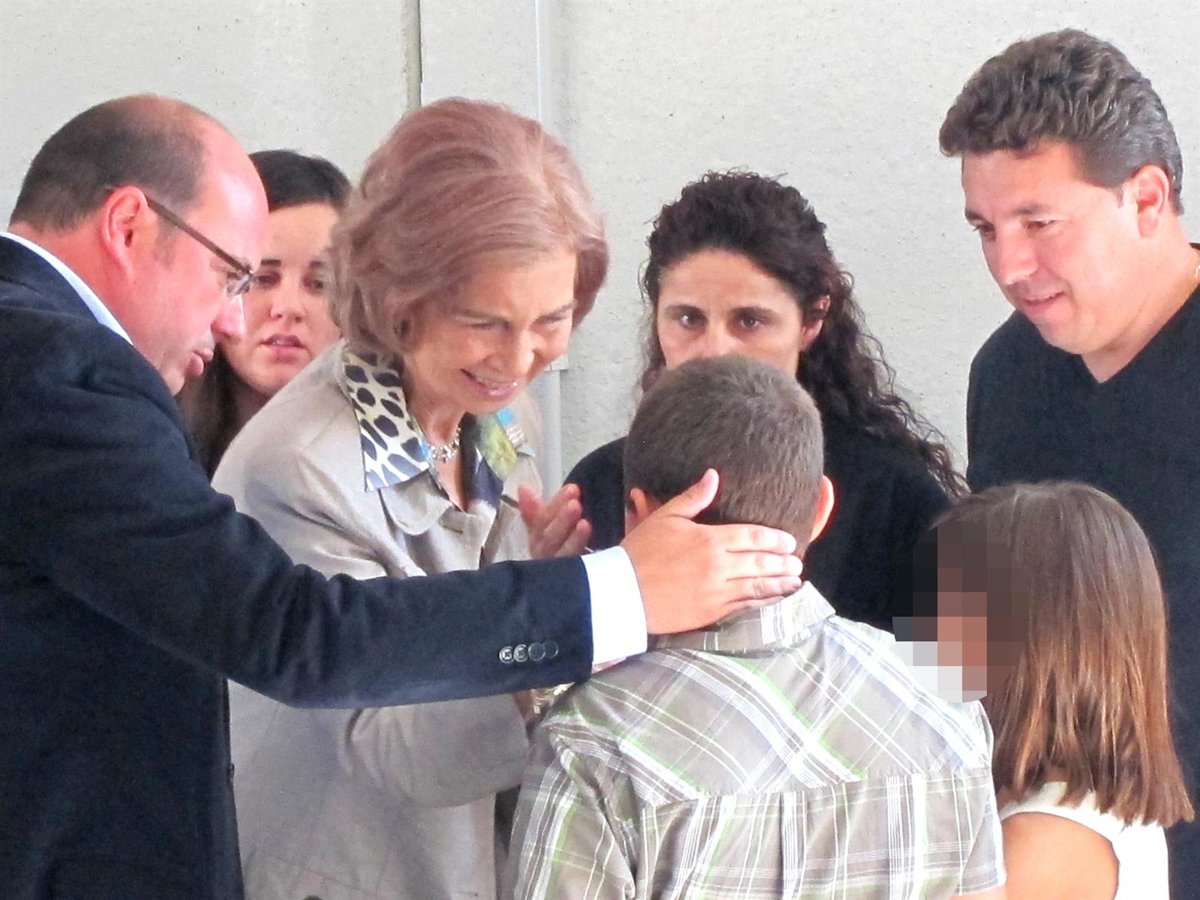 La Reina ha llegado en helicóptero acompañada por la ministra de Sanidad, Servicios Sociales e Igualdad, Ana Mato, y ha estado acompañada y guiada en su visita por el delegado del Gobierno en la Región, Joaquín Bascuñana, el presidente del Gobierno regional, Ramón Luis Valcárcel, y por el alcalde del municipio, Pedro Antonio Sánchez.