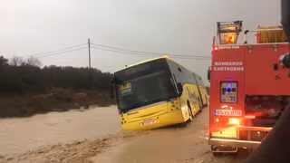 La Policía Local y los Bomberos de Cartagena han procedido al rescate de 70 niños que se encontraban atrapados en el autobús escolar en el que viajaban por la carretera del Sifón debido a las inundaciones por las lluvias.
