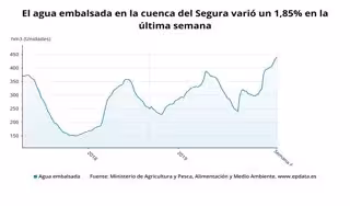 Los pantanos de la cuenca del Segura cuentan con unas reservas de 445 hectómetros cúbicos, cuatro más que la semana pasada, según datos del Ministerio para la Transición Ecológica y el Reto Demográfico recogidos por Europa Press.