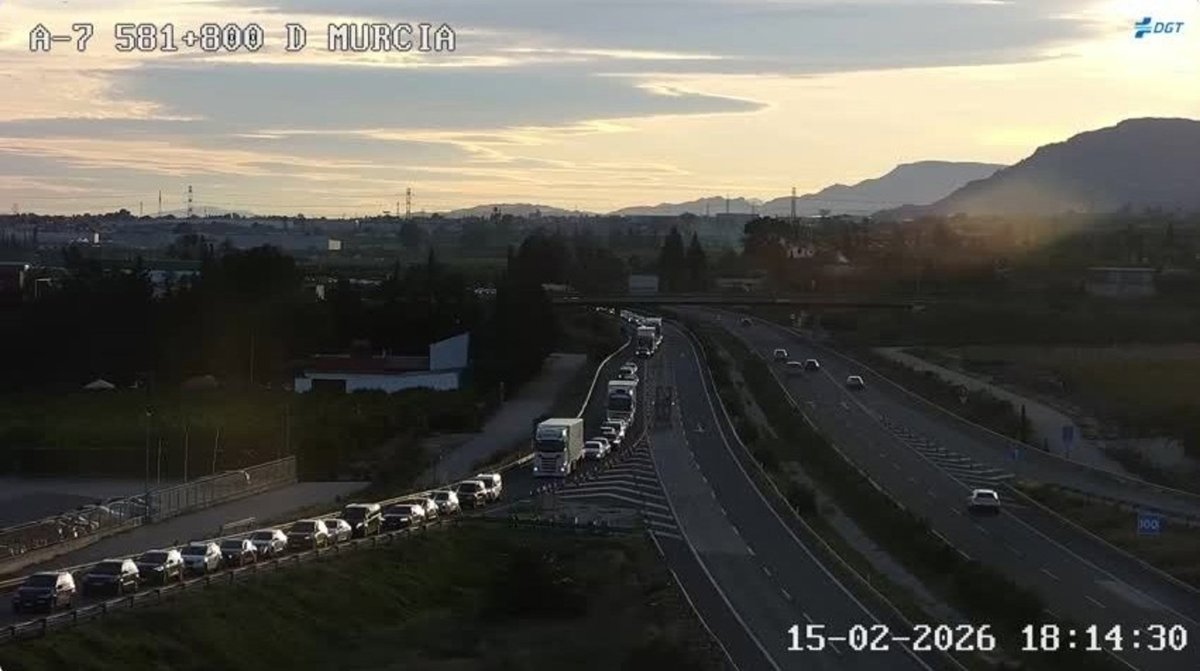 La autovía A-7 está registrado retenciones, en el punto kilométrico 585, a la altura de la Ermita de Belén, en el término municipal de Murcia, debido a un desvío obligatorio por obras. El tráfico rodado se está derivando a la N-340.