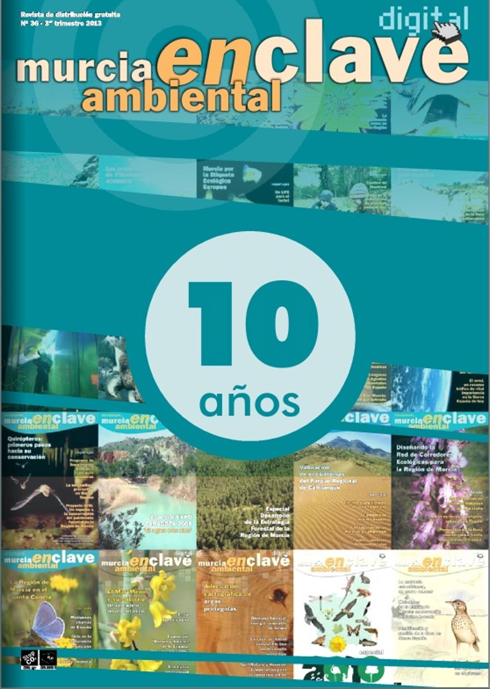 La Revista Murcia Enclave Ambiental, dependiente de la Dirección General de Medio Ambiente de la Consejería de Presidencia, celebra su décimo aniversario con la edición de un número especial que recoge lo más destacado de su historia y el importante número de acciones llevadas a cabo en este ámbito en la Región de Murcia.
