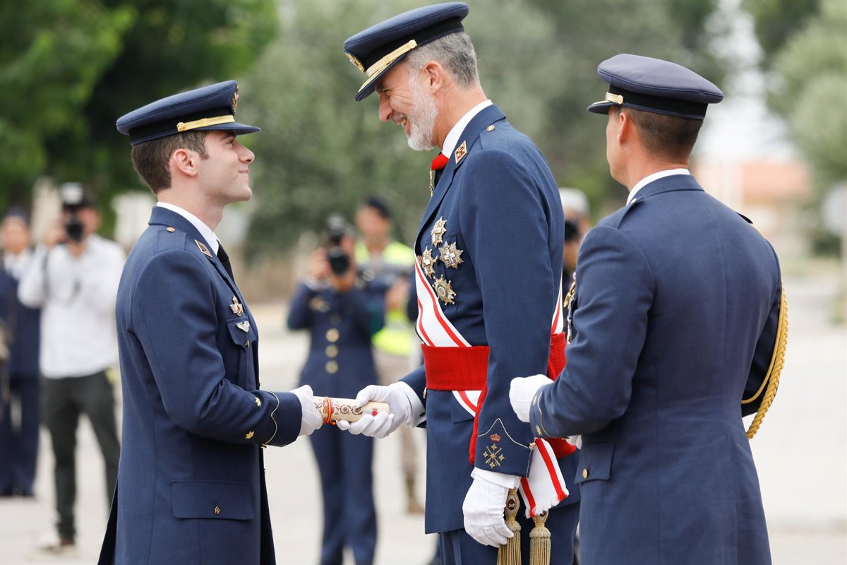 Su Majestad el Rey ha presidido este martes la entrega de Reales Despachos 2023 de nuevos oficiales a un total de 125 nuevos tenientes del Ejército del Aire, un 10 por ciento mujeres, que han finalizado sus estudios en la Academia General del Aire (AGA) de San Javier (Murcia).