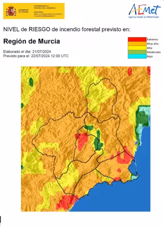 Archivo - Riesgo incendio este lunes en la Región de Murcia - AEMET - Archivo