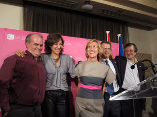 Respaldada por los candidatos de Madrid que han logrado escaño --Carlos Martínez Gorriarán, Álvaro Anchuelo e Irene Lozano--, Rosa Díez ha reconocido que es una noche de "emoción, felicidad y responsabilidad" y se ha comprometido ante sus votantes a "trabajar lo mejor posible" defendiendo siempre "la causa justa" y la igualdad de todos los ciudadanos.