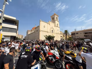 Motoristas despiden al piloto Borja Gómez en la puerta de la iglesia de San Francisco Javier - AYUNTAMIENTO DE SAN JAVIER