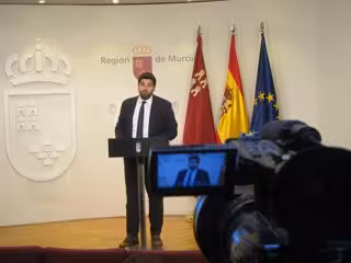 El presidente de la Comunidad en funciones, Fernando López Miras, en la rueda de prensa - EUROPA PRESS - Archivo