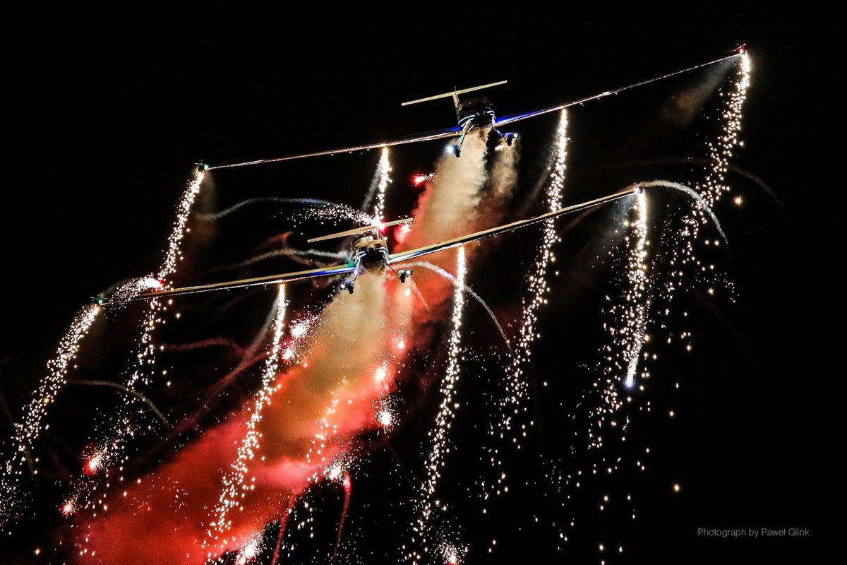 Los aviones recubiertos por 1800 LEDs irán cargados de pirotecnia que lanzarán sobre el cielo aportando una mayor espectacularidad a las acrobacias convencionales de los dos pilotos especializados en vuelos nocturnos. La exhibición tendrá su eje central entre Barnuevo y Club Náutico aunque se podrá ver desde cualquier punto de la playa. La noche del viernes 11 de octubre se podrá ver un adelanto del espectáculo protagonizado por uno de los aviones que realizará un ensayo general.