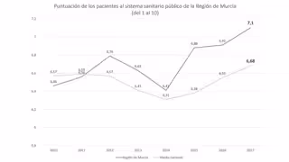 La confianza de los murcianos en su sistema público sanitario sigue creciendo cada año y se sitúa por encima de la media nacional. Los ciudadanos puntúan a la sanidad pública regional con un 7,1, varias décimas por encima de la media nacional, que obtiene un 6,68 en un intervalo del 1 al 10. El consejero de Salud, Manuel Villegas, ha destacado que "es la mejor valoración de la sanidad regional desde que hay registros".