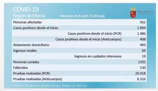 Balance de coronavirus en la Región de Murcia el 29 de abril de 2020 - CARM