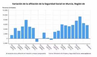 Variación de la afiliación a la Seguridad Social en la Región de Murcia - EPDATA