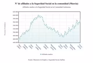 La afiliación media a la Seguridad Social en la Región de Murcia se situó en abril en 573.662 personas, que supone en términos absolutos un aumento de 8.340 personas con respecto al mes anterior (+1,48 por ciento), según datos del Ministerio de Empleo y Seguridad Social recogidos por Europa Press.