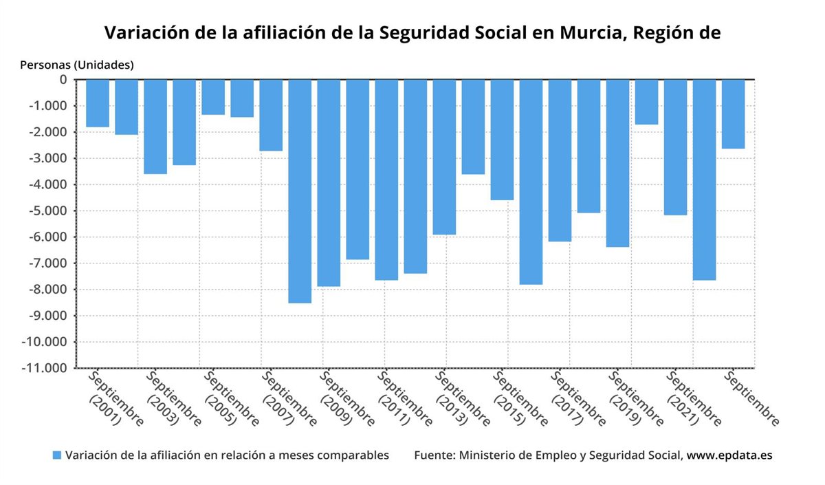 Variación de la afiliación de la Seguridad Social en Murcia - MINISTERIO DE EMPLEO Y SEGURIDAD SOCIAL, WWW.EPDAT