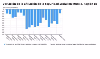 La afiliación media a la Seguridad Social en la Región de Murcia se situó en septiembre en 582.315 personas, que supone en términos absolutos un descenso de 1.715 personas con respecto al mes anterior (-0,29 por ciento), según datos del Ministerio de Inclusión, Seguridad Social y Migraciones.