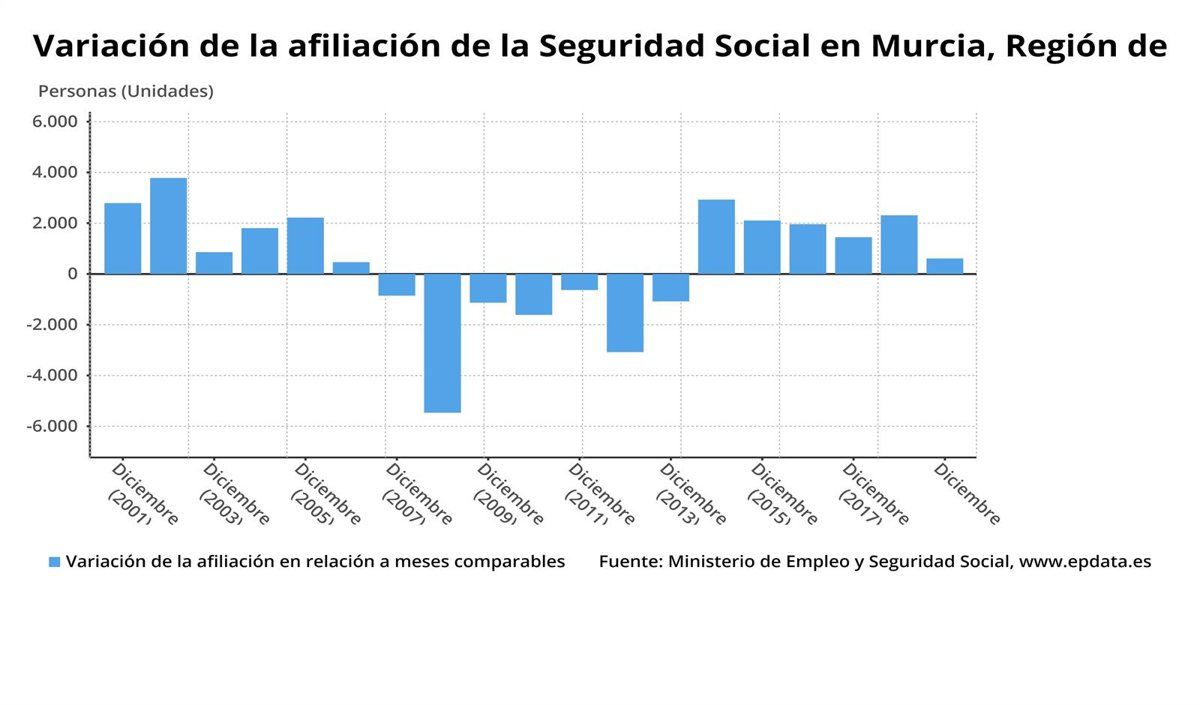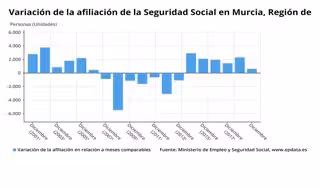 Variación de la afiliación de la Seguridad Social en Murcia - EUROPA PRESS