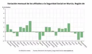 Variación mensual de los afiliados a la Seguridad Social en la Región de Murcia - EPDATA