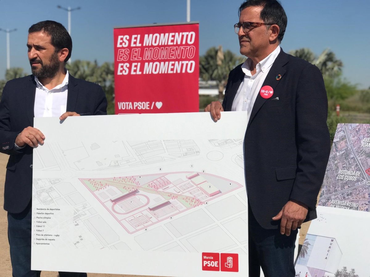 El PSOE creará una Ciudad Deportiva en el municipio de Murcia. Así lo ha anunciado este miércoles el candidato socialista a la alcaldía, José Antonio Serrano, quien, arropado por el diputado nacional Juan Luís Soto, ha asegurado que Murcia se convertirá en un referente en el ámbito de las competiciones deportivas.