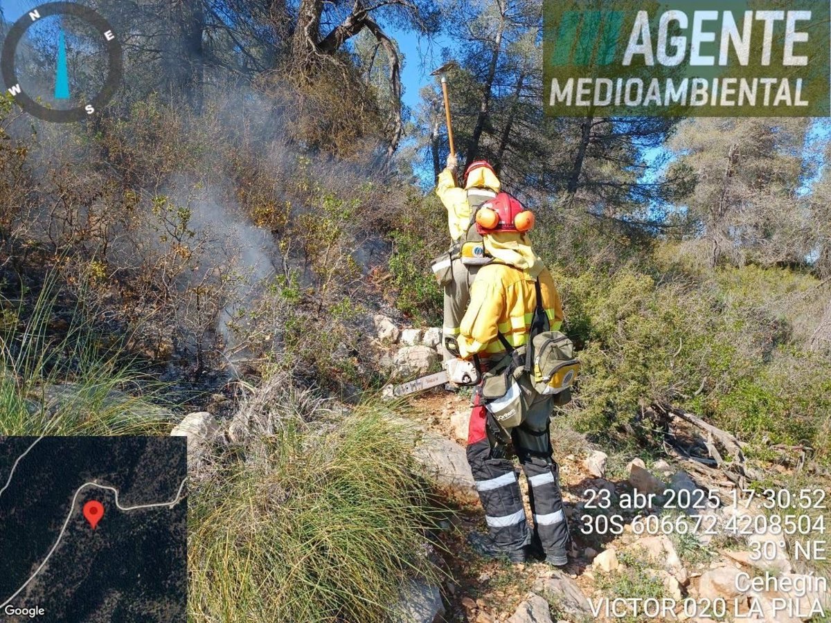 Efectivos del CEIS trabajan en la extinción de un conato de incendio en la Sierra de Burete, en Cehegín (Murcia) - AGENTE MEDIOAMBIENTAL