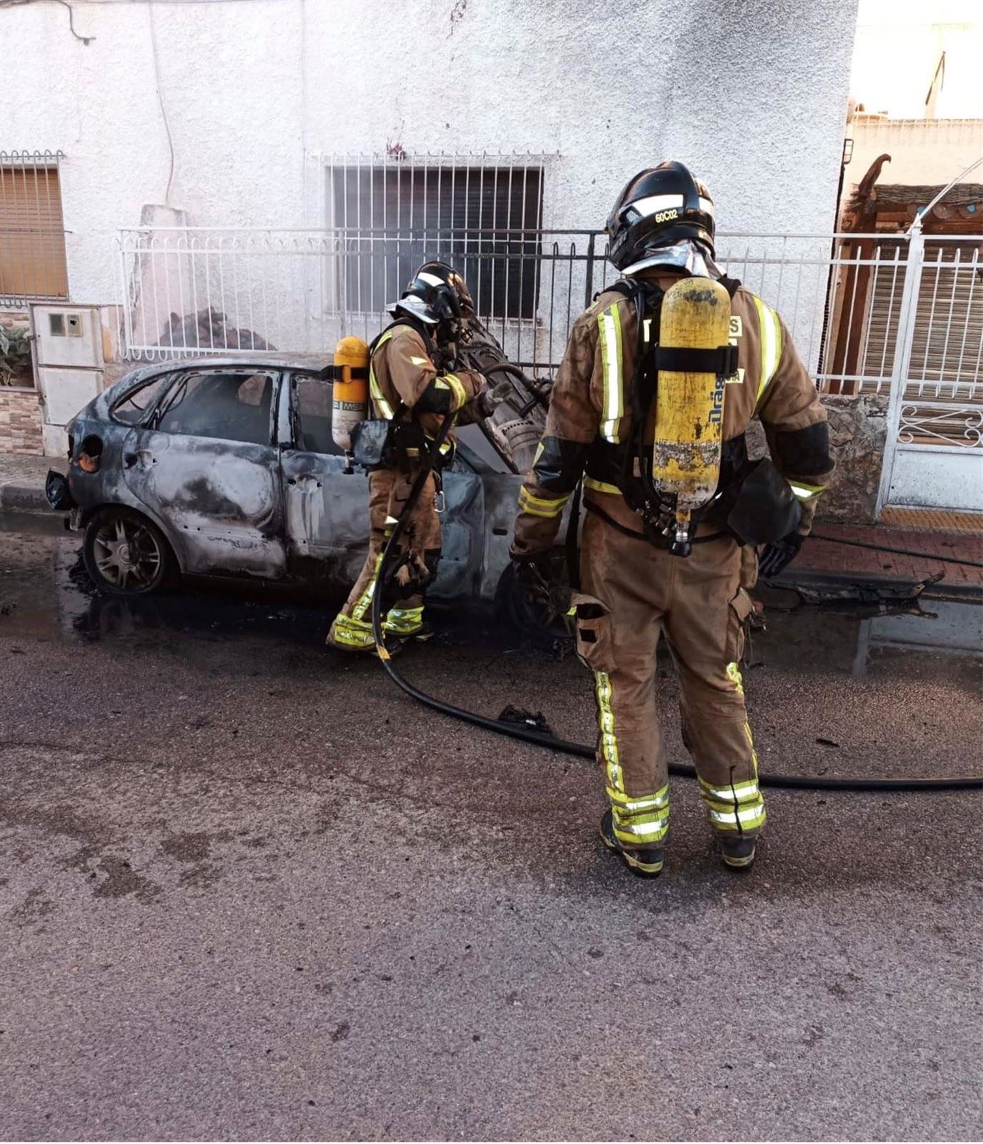 Servicios de emergencia han sofocado el incendio declarado en un coche aparcado en la calle Blasco Ibañez, a la altura del número 27, en la pedanía de la Algaida, en el municipio de Archena.