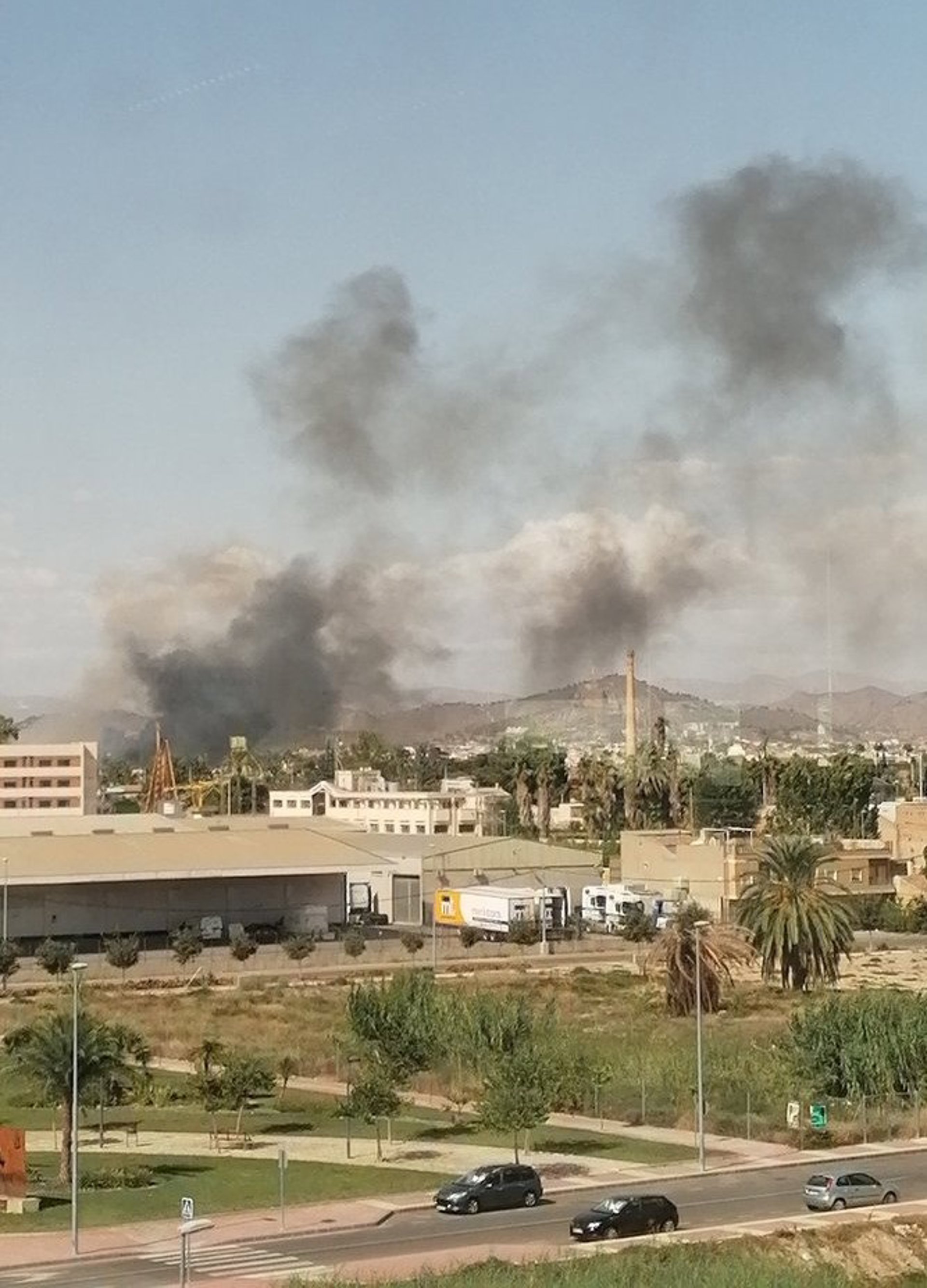 El fuego comenzaba hacia las 16.27 horas, cuando el teléfono de emergencias ha recibido más de 20 llamadas alertando de una gran columna de humo en una zona de huerta de Puente Tocinos, a la altura del carril de Los Canos con el Carril Fermín, indican desde el Centro de Coordinación de Emergencias.