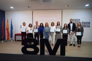 Representantes de las empresas Sociedad Anónima de Electrónica Submarina (SAES), Atende Servicios Integrados, Gestión Tributaria Territorial, Fundación Acción contra el Hambre, Clece, Clece Vitam y Mitie Facilities Services recibieron hoy estas distinciones, que otorga el Gobierno regional, en un acto celebrado en el Museo Arqueológico de Murcia.