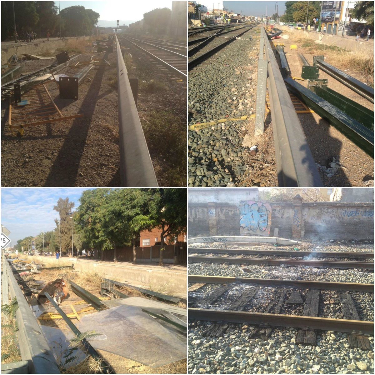 Durante estas labores de reconocimiento se han constatado daños en las vías como son 20 sujeciones quemadas por contenedores ardiendo; 15 traviesas quemadas; señales de limitación de vía arrancadas; diverso material retirado como son biondas, señales limitadoras de velocidad, contenedores, postes de electrificación y vallas, entre otros.